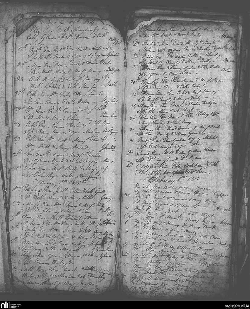 Murroe, Boher and Abington; County of Tipperary, Limerick; Diocese of Cashel and Emly. Baptisms, Dec. 1814 to Feb. 1815