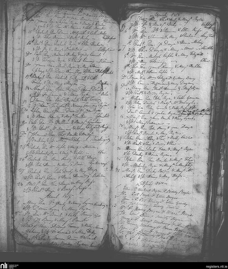 Murroe, Boher and Abington; County of Tipperary, Limerick; Diocese of Cashel and Emly. Baptisms, Feb. 1815 to Apr. 1815