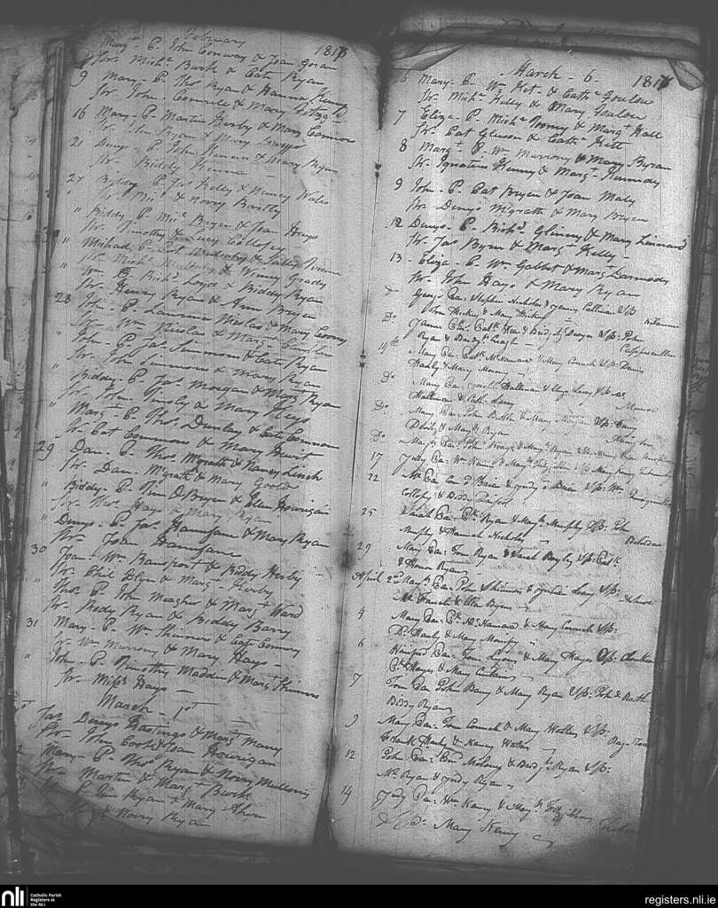 Murroe, Boher and Abington; County of Tipperary, Limerick; Diocese of Cashel and Emly. Baptisms, Feb. 1817 to Apr. 1817