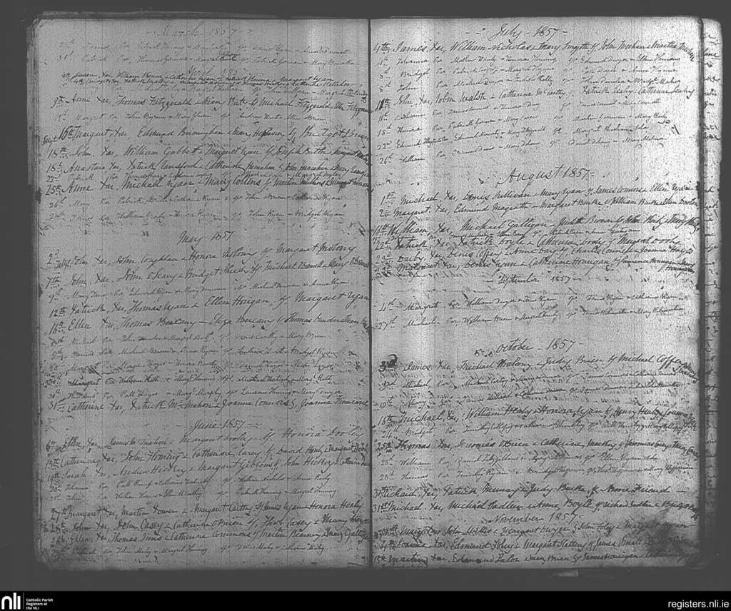 Murroe, Boher and Abington; County of Tipperary, Limerick; Diocese of Cashel and Emly. Baptisms, Mar. 1857 to Nov. 1857
