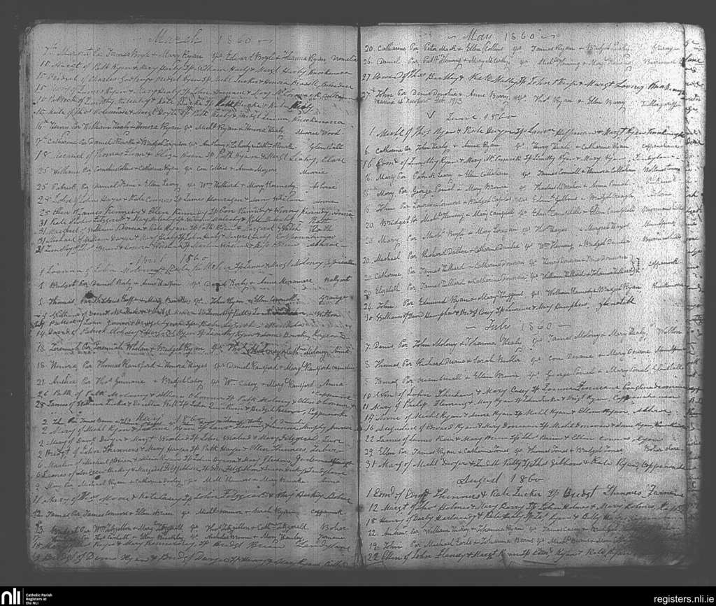 Murroe, Boher and Abington; County of Tipperary, Limerick; Diocese of Cashel and Emly. Baptisms, Mar. 1860 to Aug. 1860