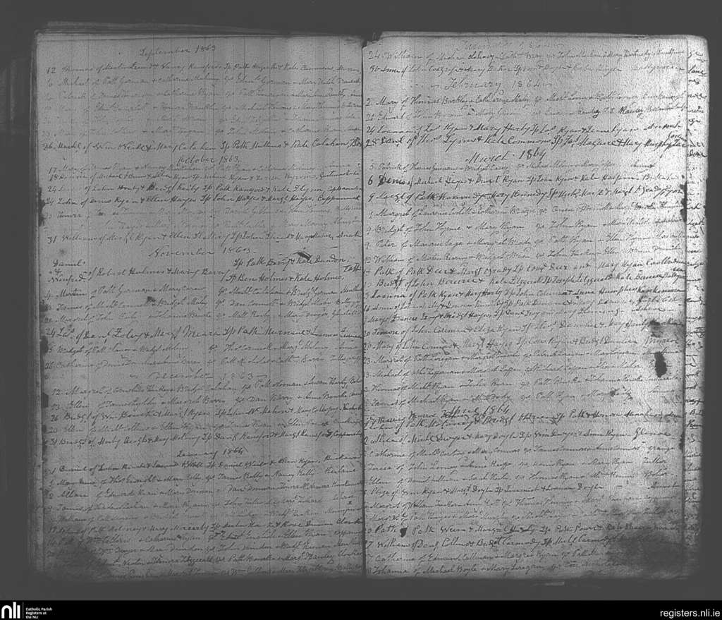Murroe, Boher and Abington; County of Tipperary, Limerick; Diocese of Cashel and Emly. Baptisms, Sep. 1863 to Apr. 1864