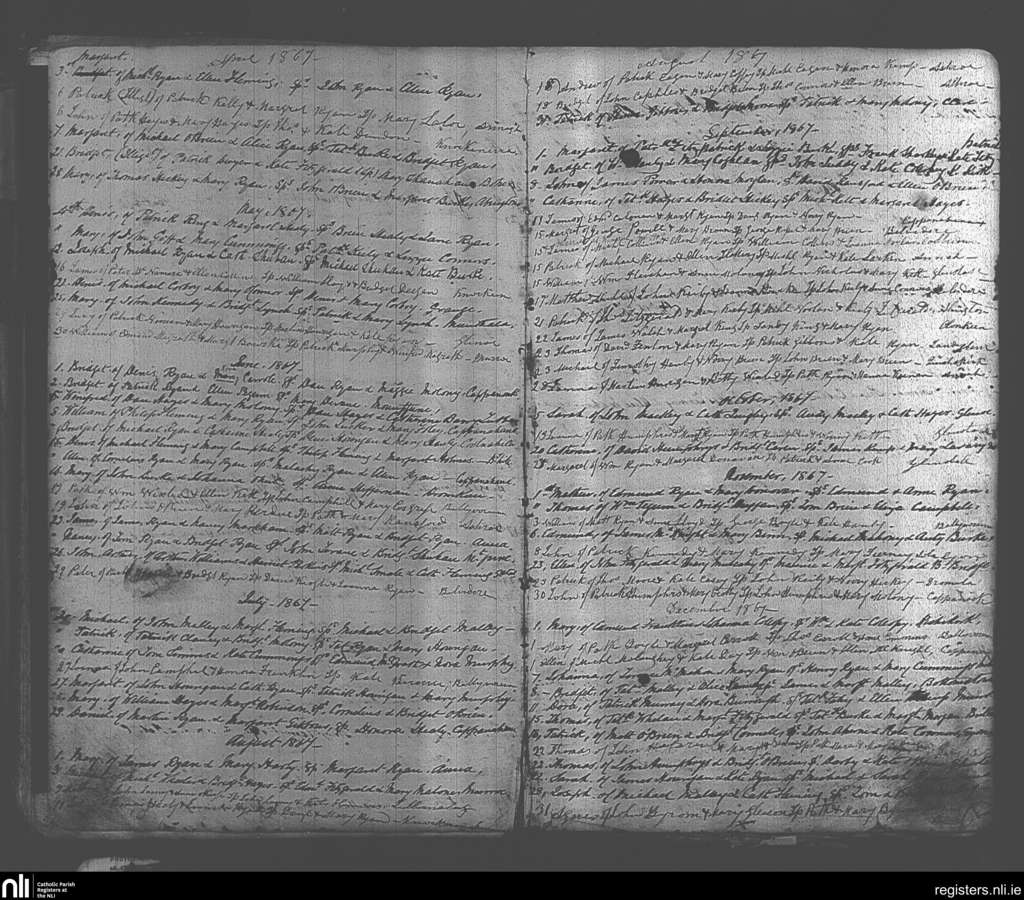 Murroe, Boher and Abington; County of Tipperary, Limerick; Diocese of Cashel and Emly. Baptisms, Apr. 1867 to Dec. 1867