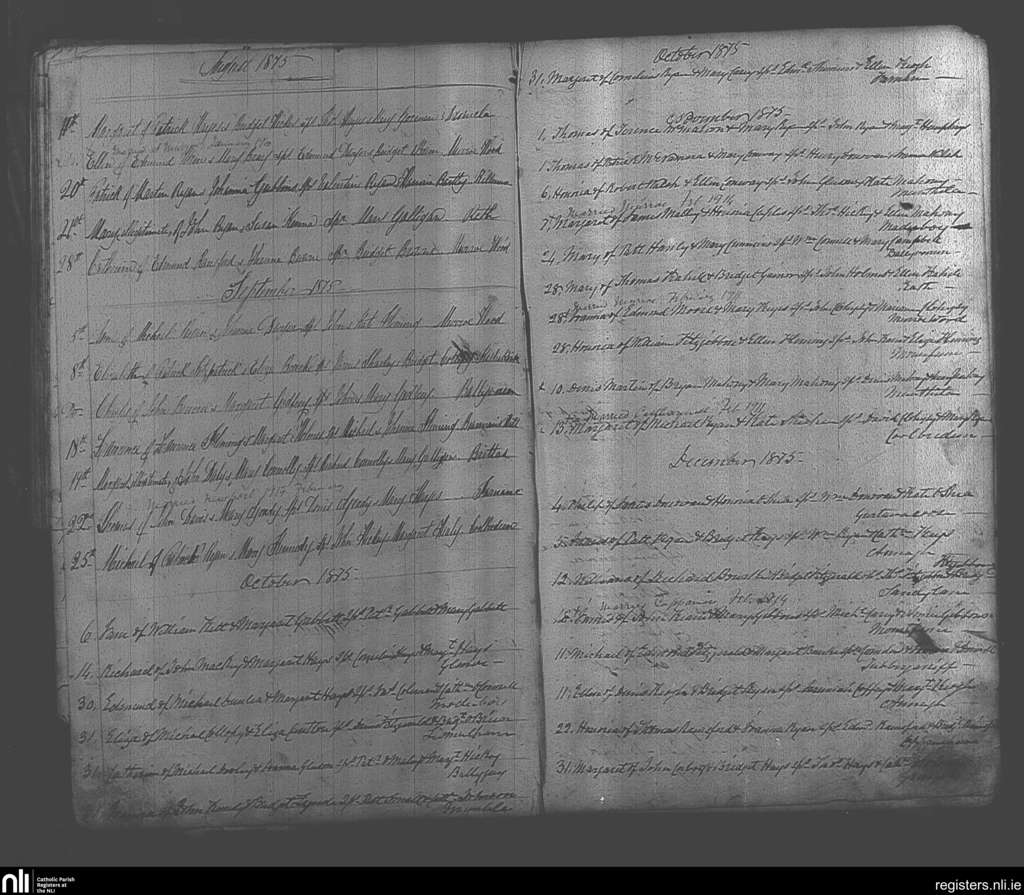 Murroe, Boher and Abington; County of Tipperary, Limerick; Diocese of Cashel and Emly. Baptisms, Aug. 1875 to Dec. 1875