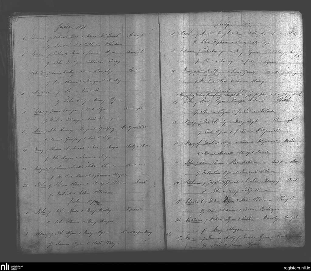 Murroe, Boher and Abington; County of Tipperary, Limerick; Diocese of Cashel and Emly. Baptisms, June 1877 to Aug. 1877