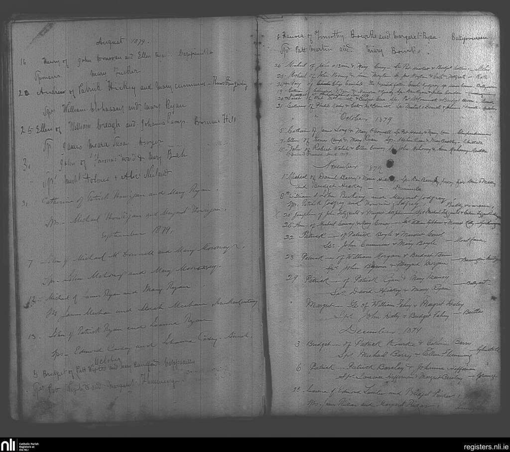 Murroe, Boher and Abington; County of Tipperary, Limerick; Diocese of Cashel and Emly. Baptisms, Aug. 1879 to Dec. 1879
