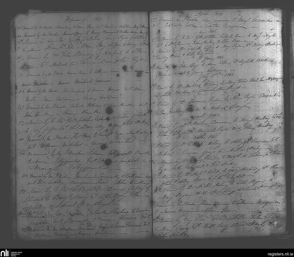 Murroe, Boher and Abington; County of Tipperary, Limerick; Diocese of Cashel and Emly. Marriages, Feb. 1846 to Oct. 1846