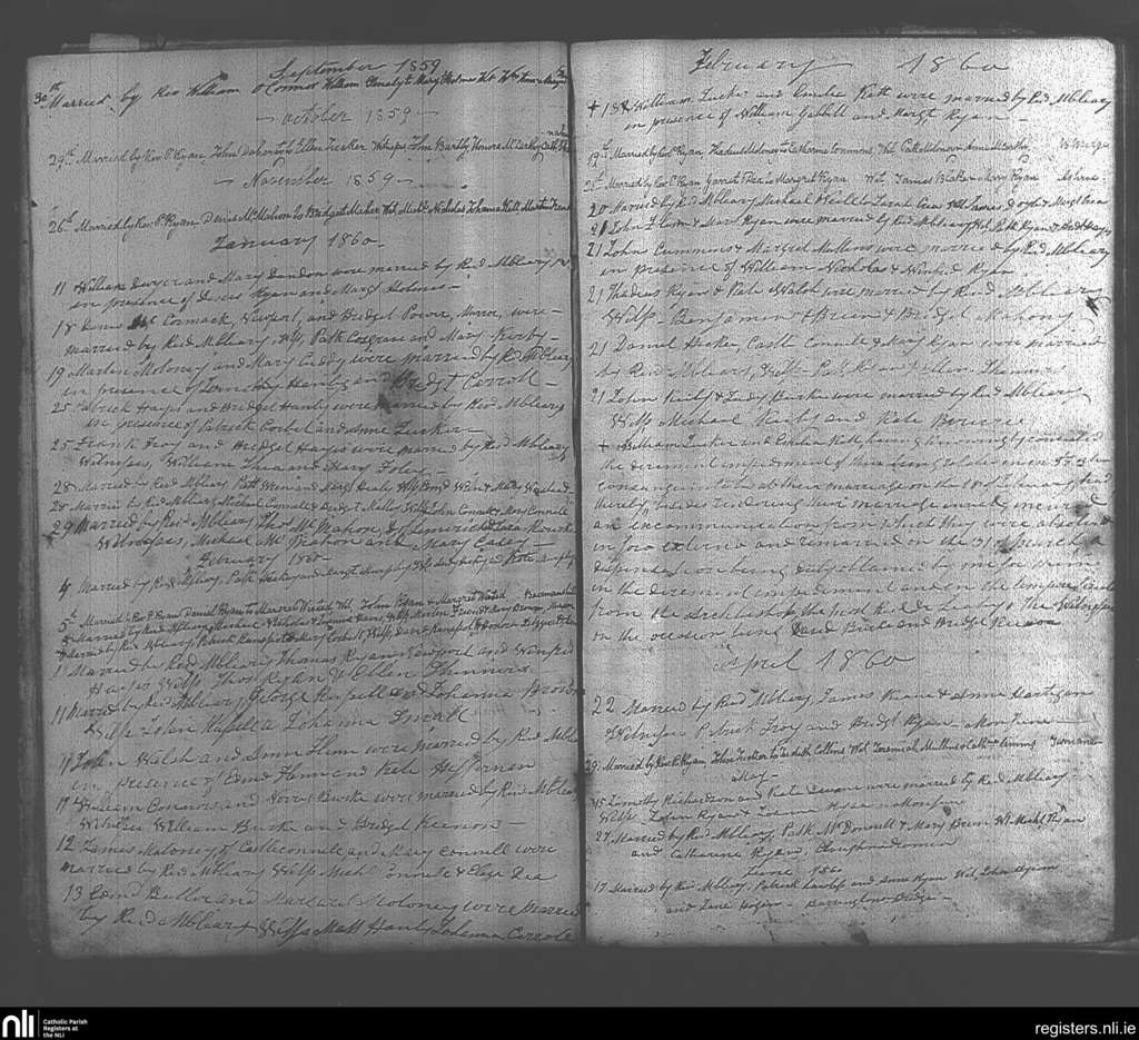 Murroe, Boher and Abington; County of Tipperary, Limerick; Diocese of Cashel and Emly. Marriages, Sep. 1859 to June 1860