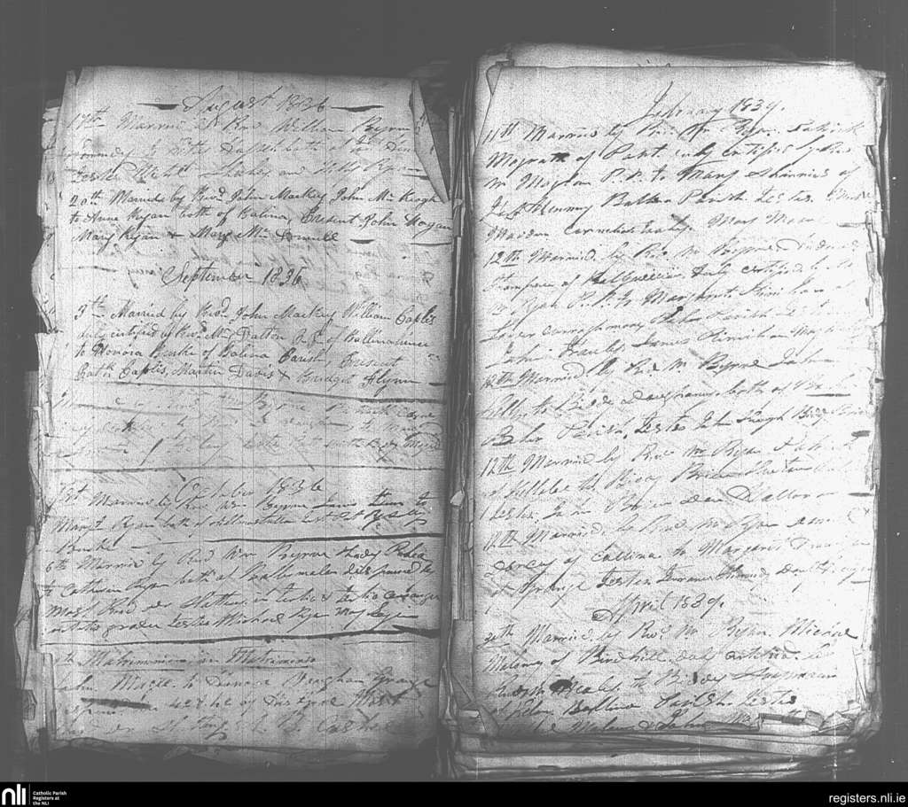 Ballina; County of Tipperary; Diocese of Cashel and Emly. Marriages, Aug. 1836 to Apr. 1837