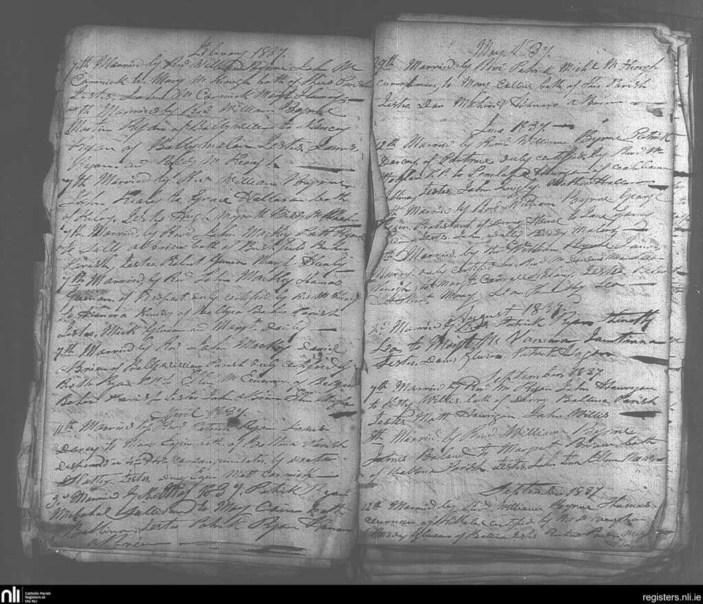 Ballina; County of Tipperary; Diocese of Cashel and Emly. Marriages, Feb. 1837 to Sep. 1837