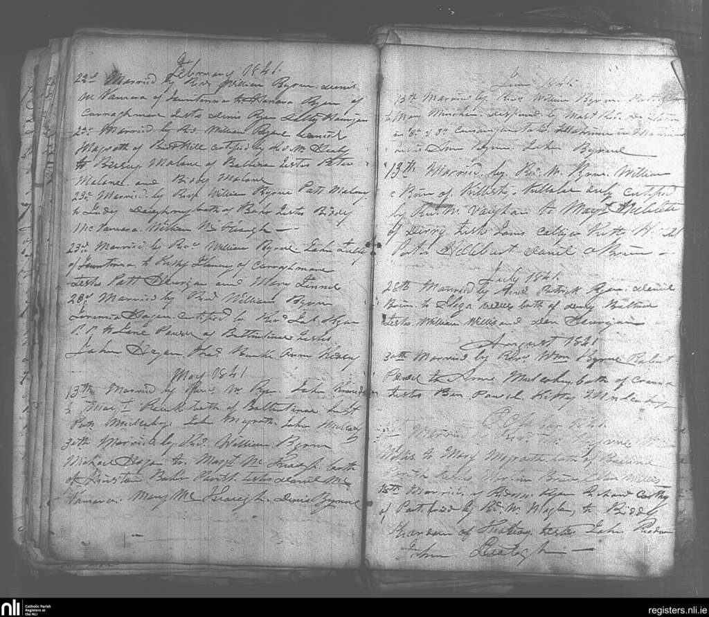 Ballina; County of Tipperary; Diocese of Cashel and Emly. Marriages, Feb. 1841 to Oct. 1841