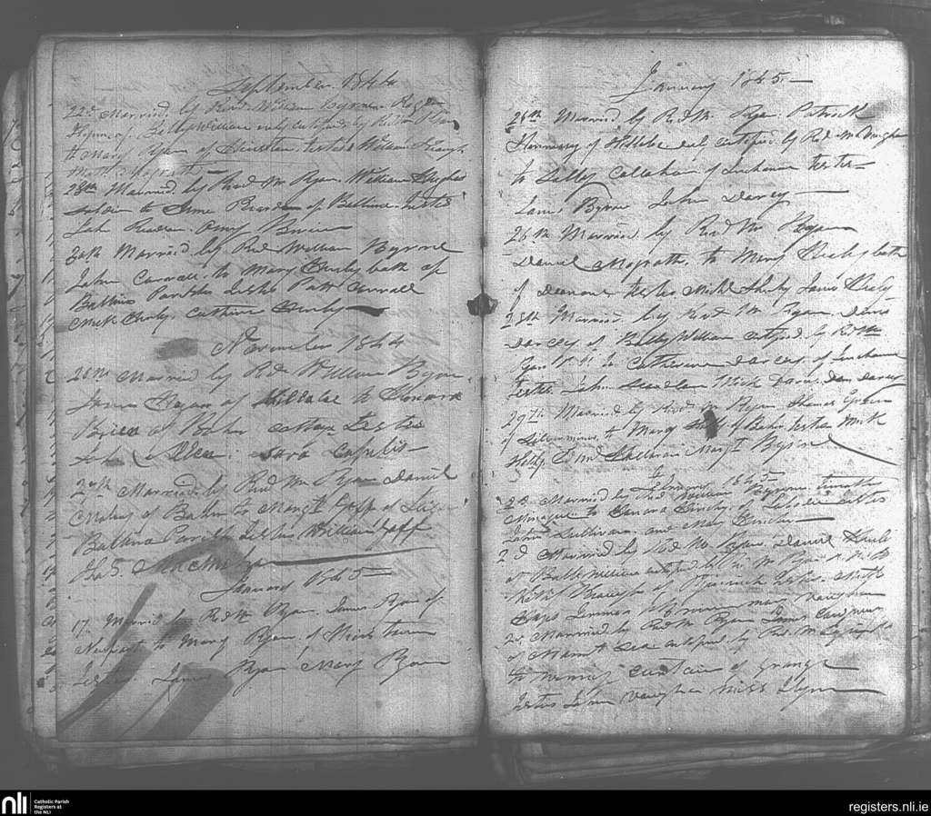 Ballina; County of Tipperary; Diocese of Cashel and Emly. Marriages, Sep. 1844 to Feb. 1845