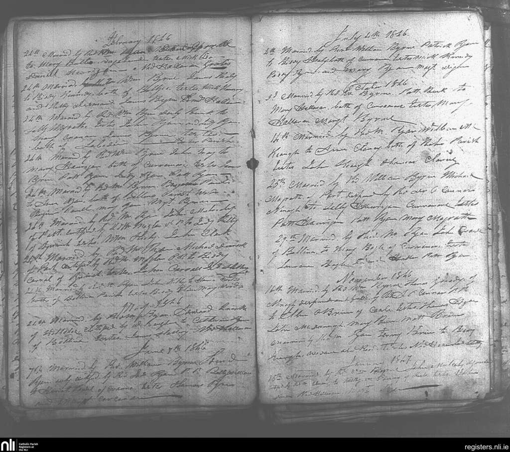 Ballina; County of Tipperary; Diocese of Cashel and Emly. Marriages, Feb. 1846 to Jan. 1847
