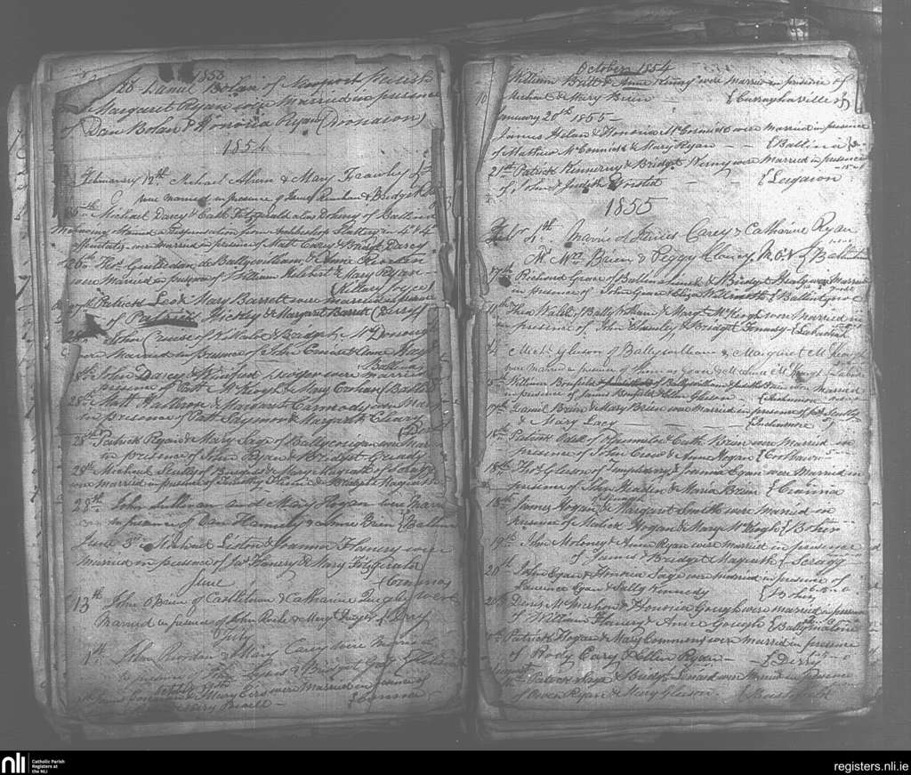 Ballina; County of Tipperary; Diocese of Cashel and Emly. Marriages, Nov. 1853 to Aug. 1855