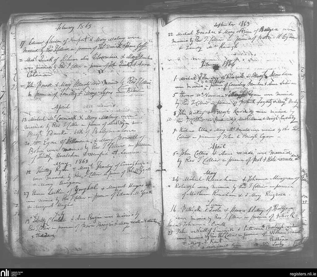 Ballina; County of Tipperary; Diocese of Cashel and Emly. Marriages, Feb. 1863 to June 1864