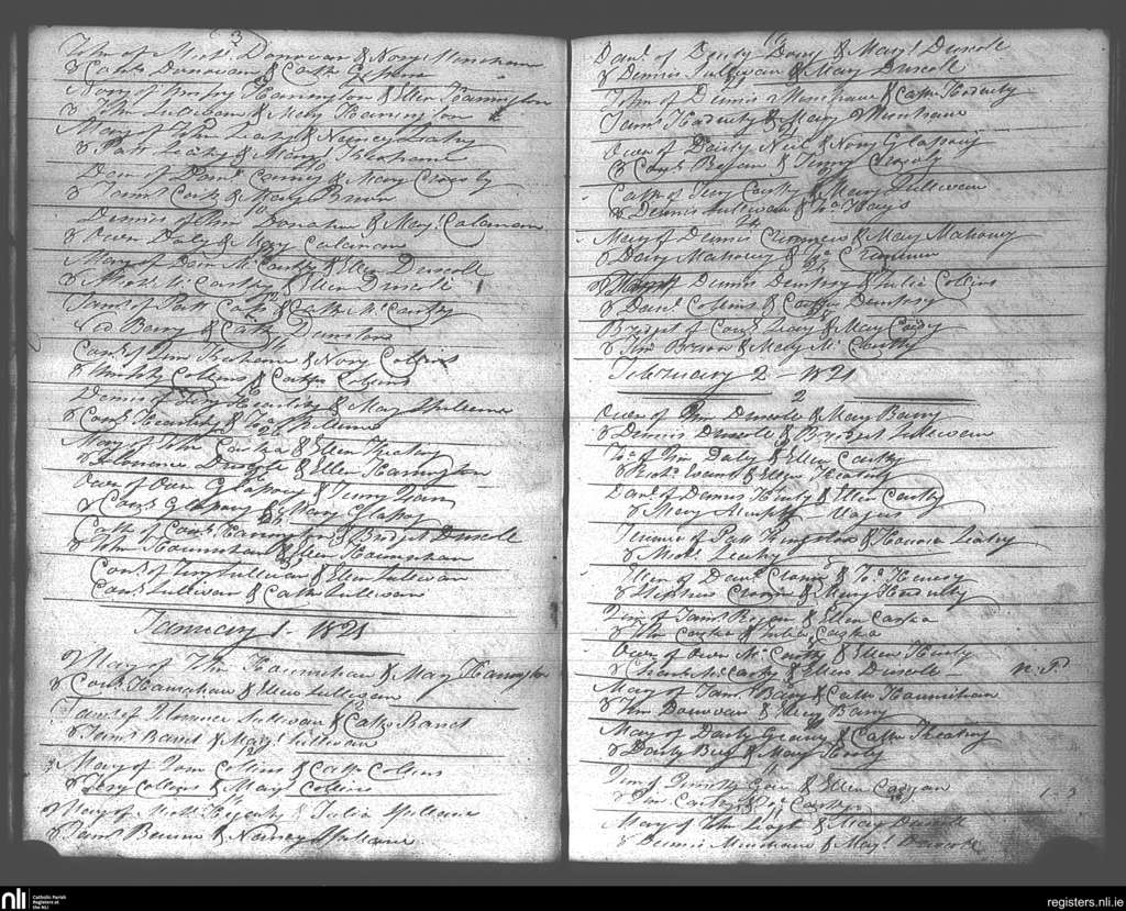 Caheragh; County of Cork; Diocese of Cork and Ross. Baptisms, Dec. 1820 to Feb. 1821