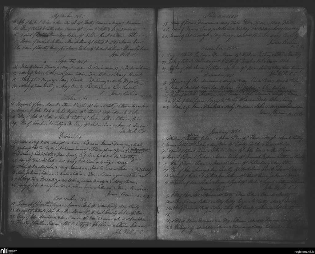 Caheragh; County of Cork; Diocese of Cork and Ross. Baptisms, Sep. 1865 to Jan. 1866
