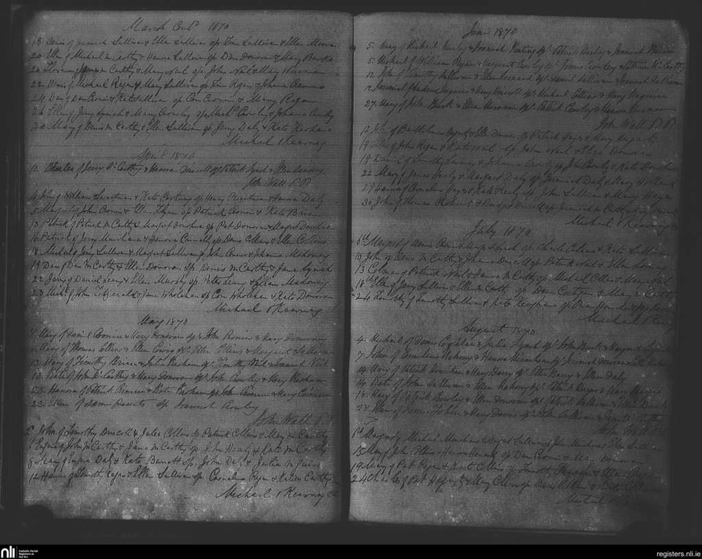 Caheragh; County of Cork; Diocese of Cork and Ross. Baptisms, Mar. 1870 to Aug. 1870