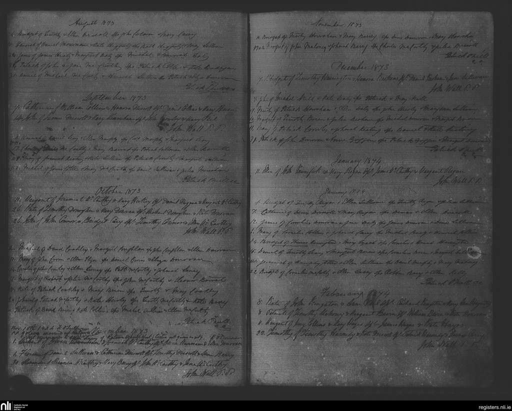 Caheragh; County of Cork; Diocese of Cork and Ross. Baptisms, Aug. 1873 to Feb. 1874