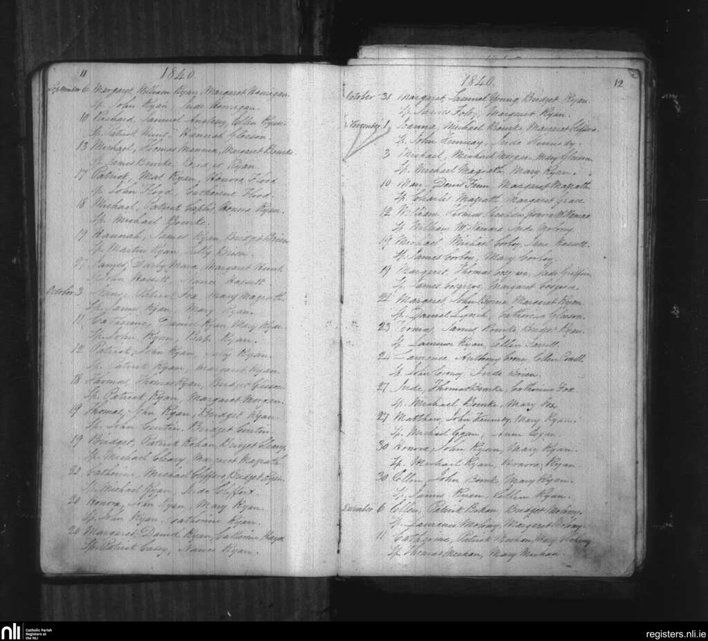 Ballinahinch and Killoscully; County of Tipperary; Diocese of Cashel and Emly. Baptisms, Sep. 1840 to Dec. 1840