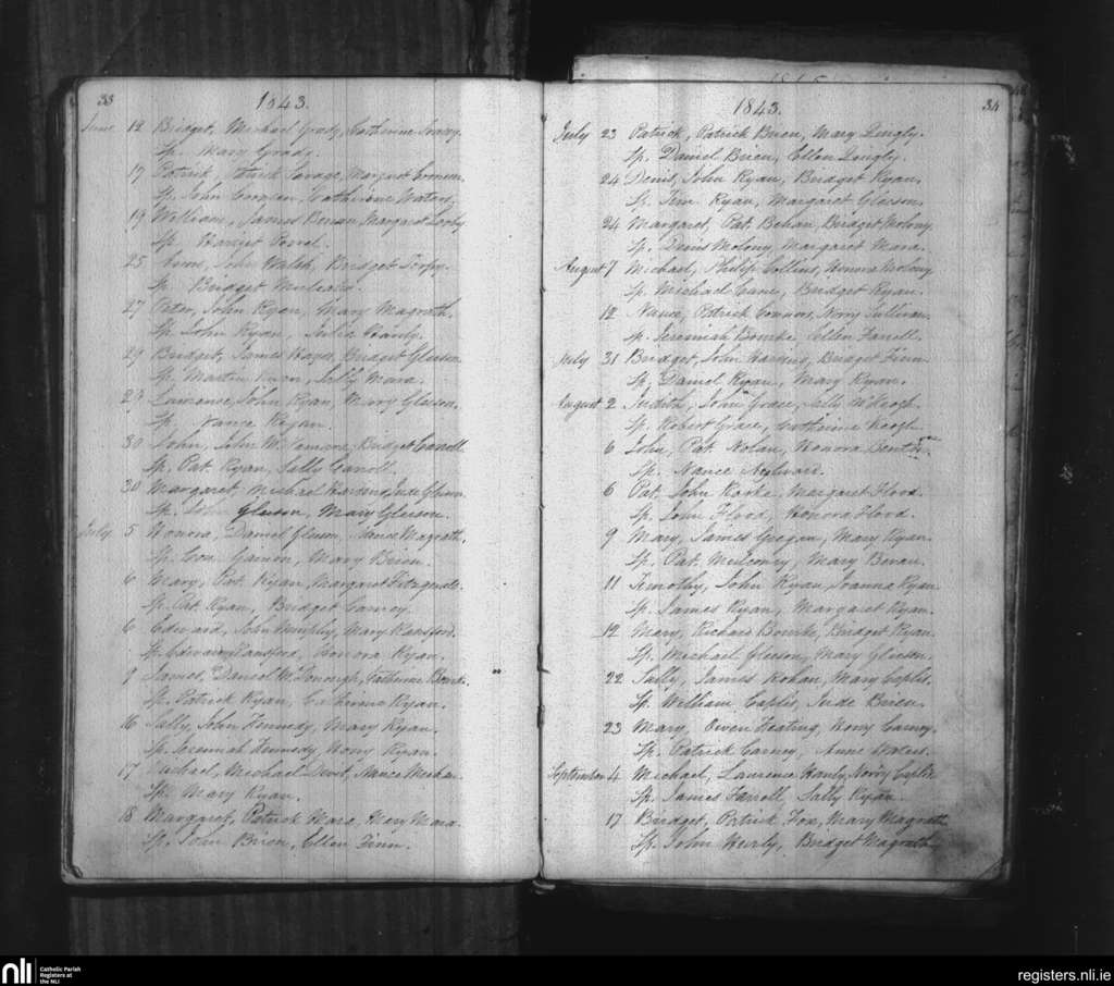 Ballinahinch and Killoscully; County of Tipperary; Diocese of Cashel and Emly. Baptisms, June 1843 to Sep. 1843