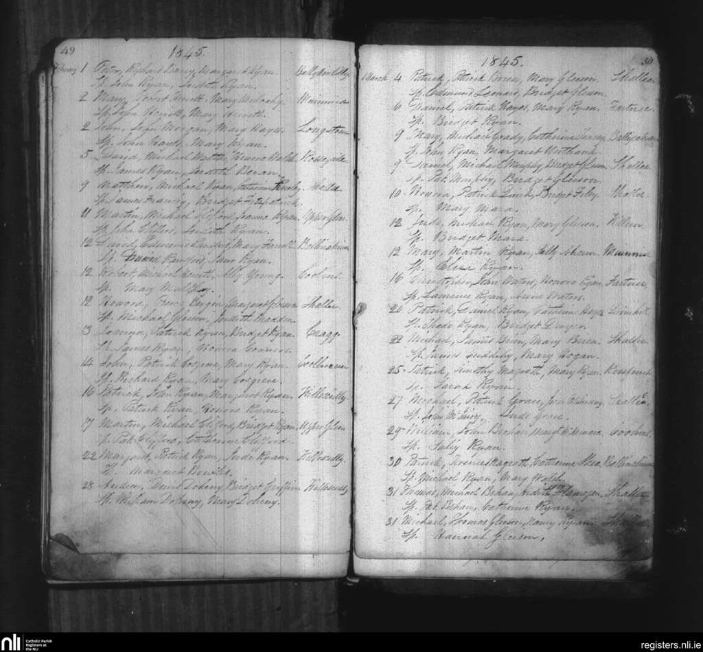 Ballinahinch and Killoscully; County of Tipperary; Diocese of Cashel and Emly. Baptisms, Feb. 1845 to Mar. 1845