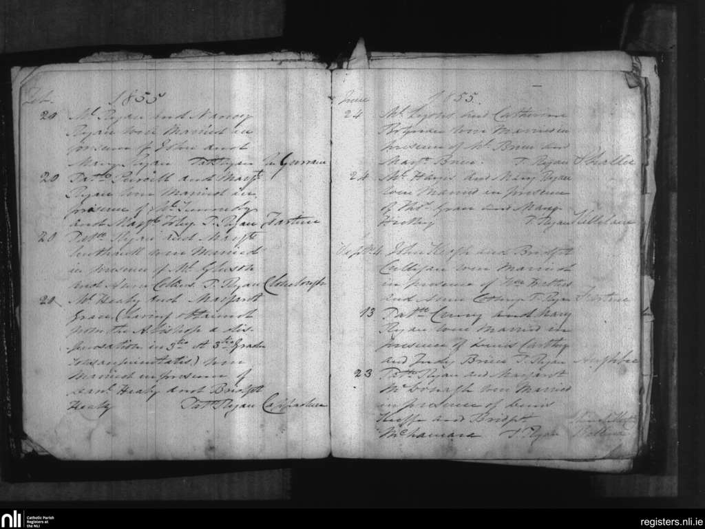 Ballinahinch and Killoscully; County of Tipperary; Diocese of Cashel and Emly. Marriages, Feb. 1855 to Sep. 1855