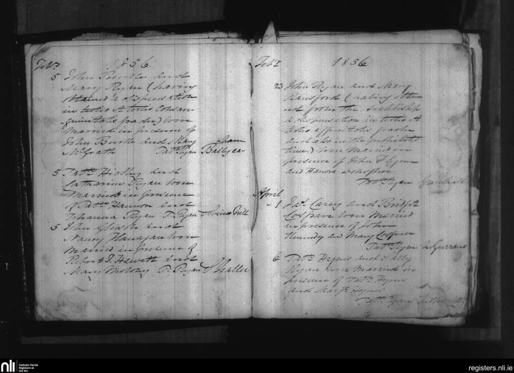 Ballinahinch and Killoscully; County of Tipperary; Diocese of Cashel and Emly. Marriages, Feb. 1856 to Apr. 1856