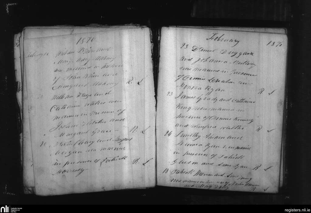 Ballinahinch and Killoscully; County of Tipperary; Diocese of Cashel and Emly. Marriages, Feb. 1870