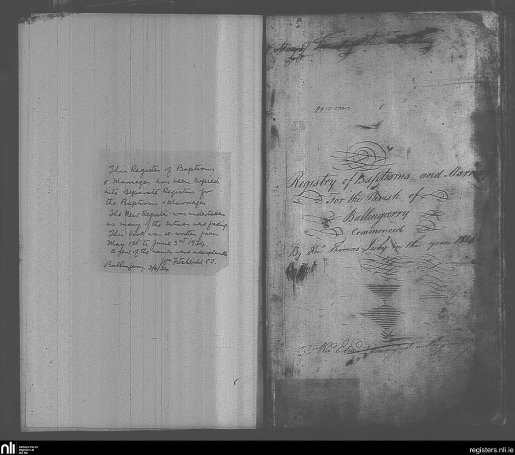 Ballingarry; County of Tipperary; Diocese of Cashel and Emly. Baptisms, Marriages