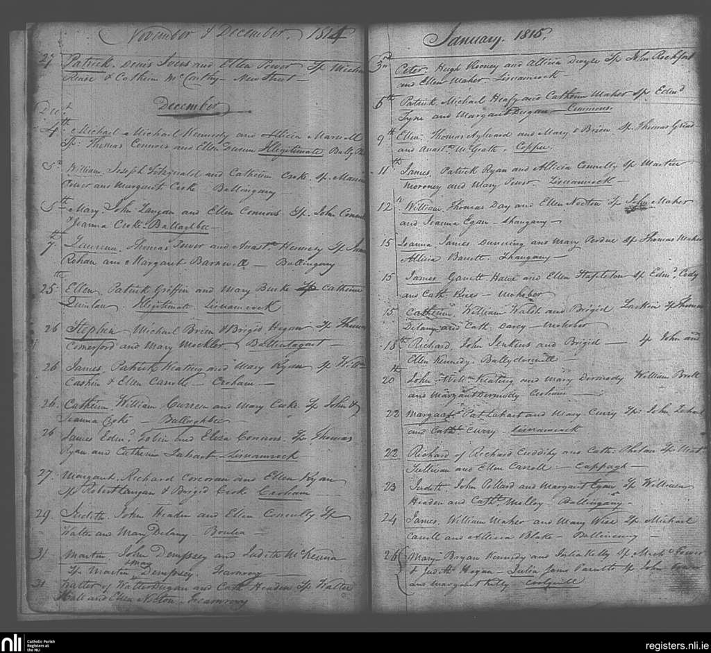 Ballingarry; County of Tipperary; Diocese of Cashel and Emly. Baptisms, Nov. 1814 to Jan. 1815