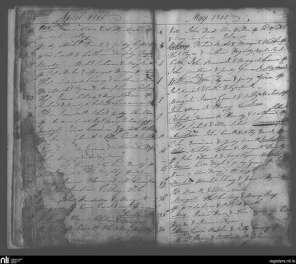 Ballingarry; County of Tipperary; Diocese of Cashel and Emly. Baptisms, Apr. 1815 to May 1815