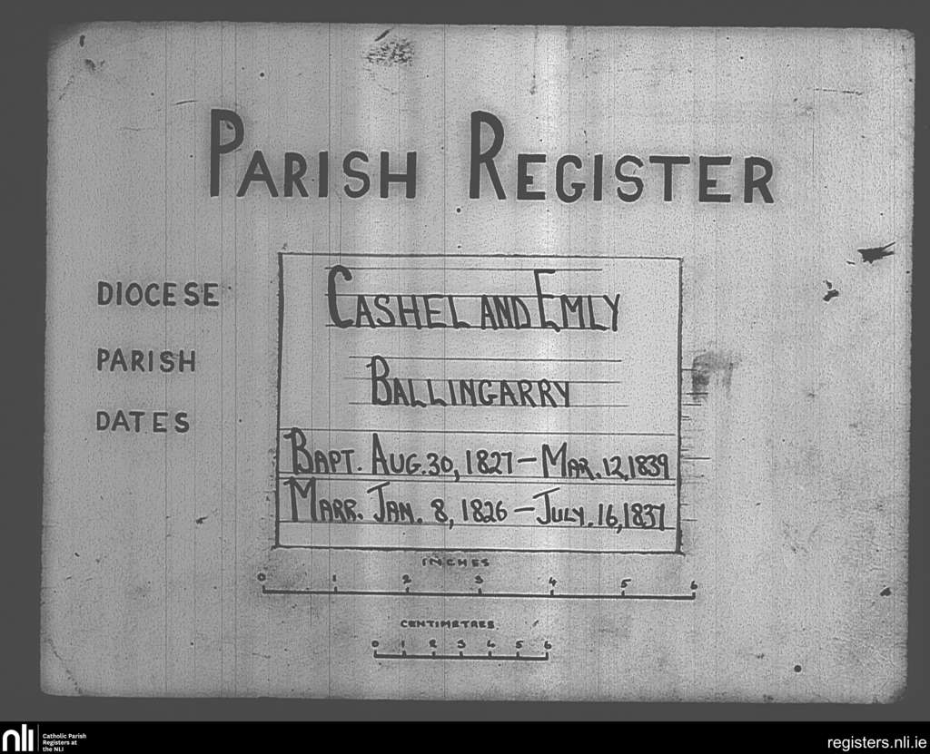 Ballingarry; County of Tipperary; Diocese of Cashel and Emly. Baptisms, Marriages
