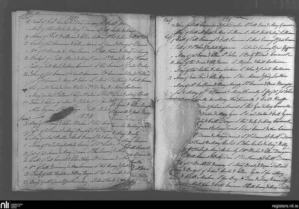 Ballingarry; County of Tipperary; Diocese of Cashel and Emly. Baptisms, Dec. 1827 to Feb. 1828