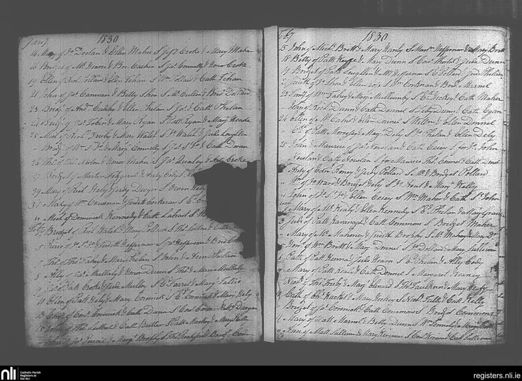 Ballingarry; County of Tipperary; Diocese of Cashel and Emly. Baptisms, Jan. 1830 to Mar. 1830