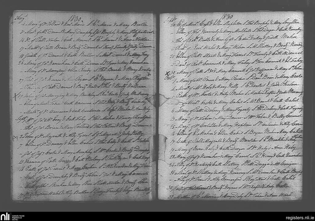Ballingarry; County of Tipperary; Diocese of Cashel and Emly. Baptisms, Aug. 1830 to Oct. 1830