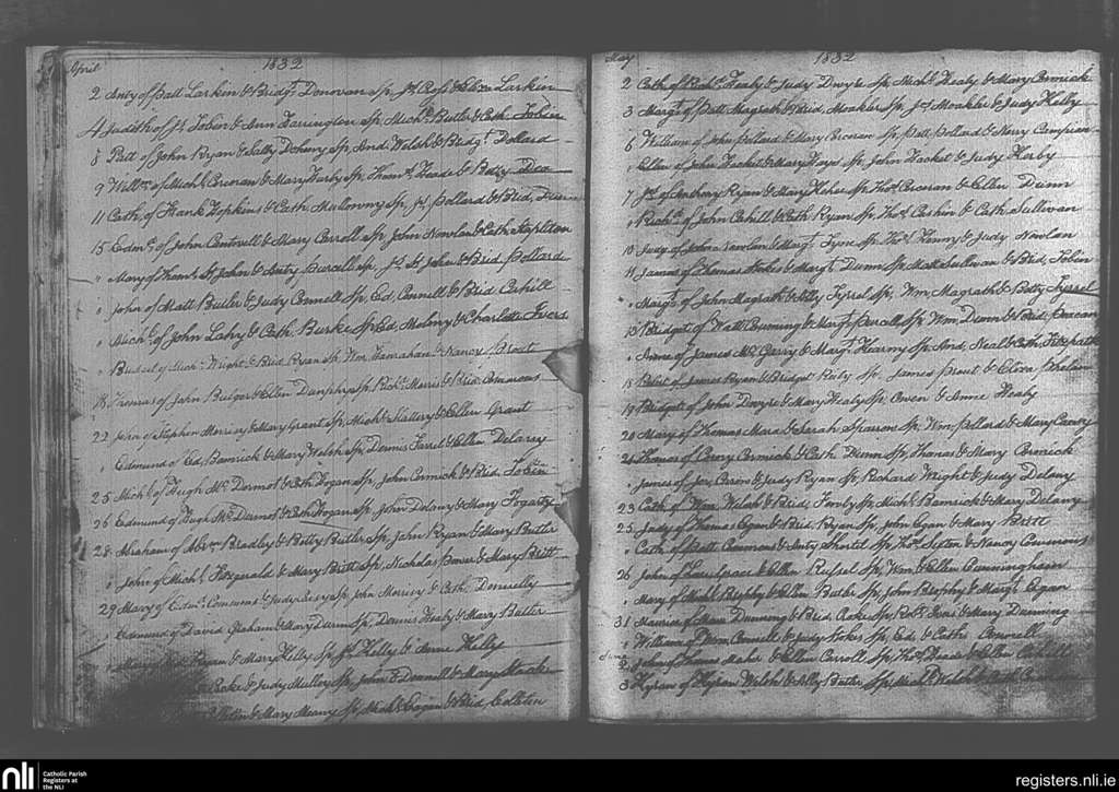Ballingarry; County of Tipperary; Diocese of Cashel and Emly. Baptisms, Apr. 1832 to June 1832
