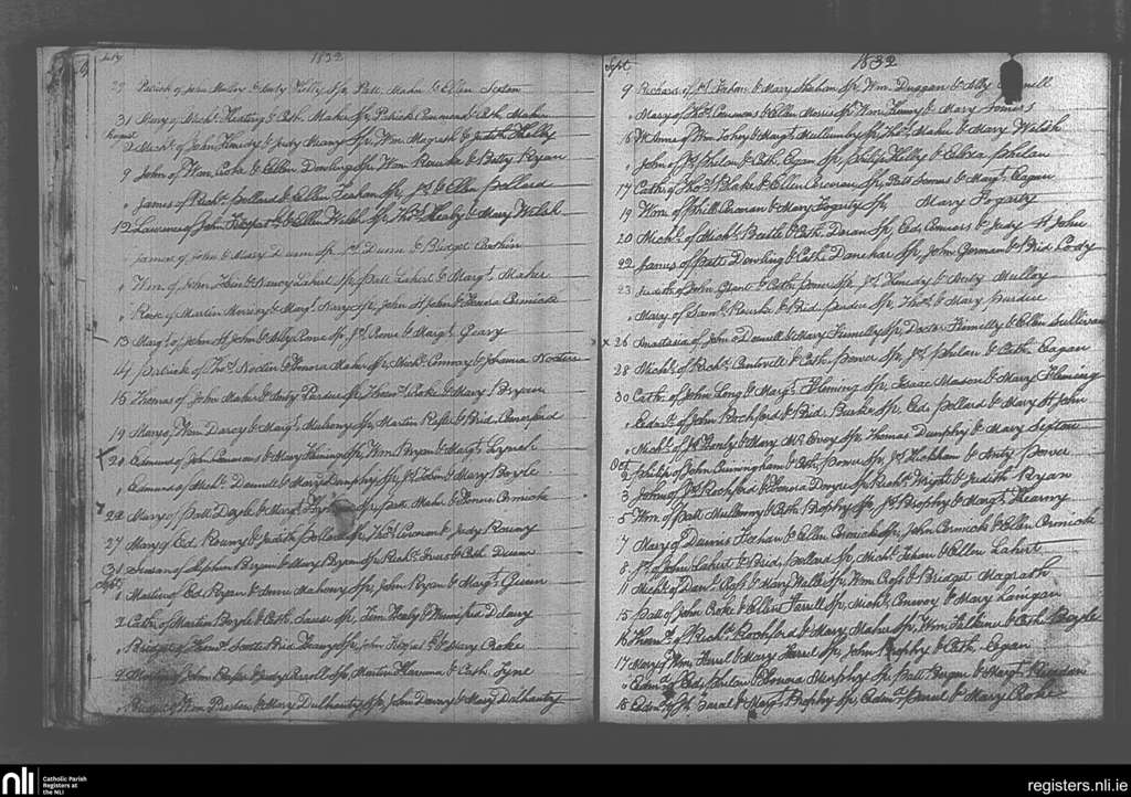 Ballingarry; County of Tipperary; Diocese of Cashel and Emly. Baptisms, July 1832 to Oct. 1832