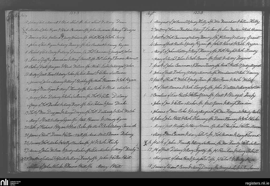 Ballingarry; County of Tipperary; Diocese of Cashel and Emly. Baptisms, July 1833 to Aug. 1833
