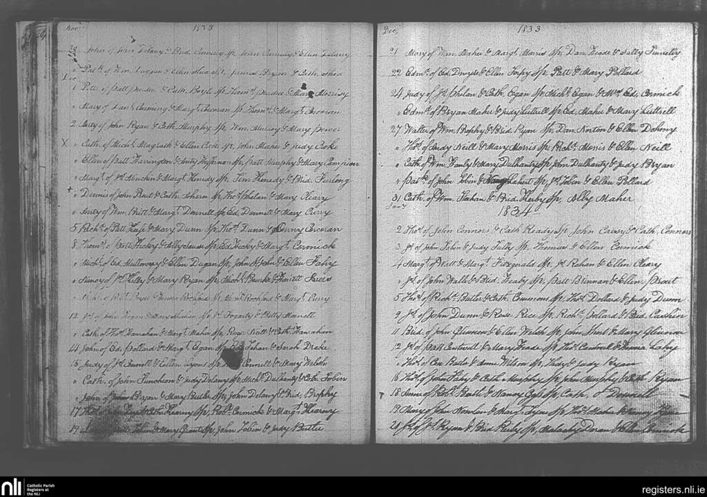 Ballingarry; County of Tipperary; Diocese of Cashel and Emly. Baptisms, Nov. 1833 to Jan. 1834