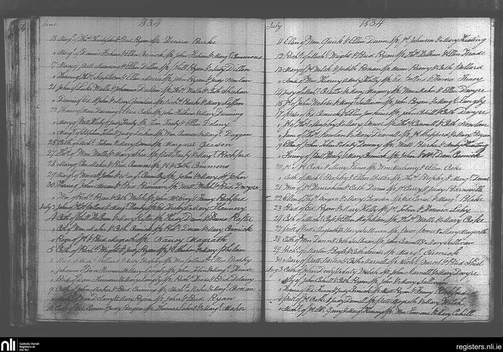 Ballingarry; County of Tipperary; Diocese of Cashel and Emly. Baptisms, June 1834 to Aug. 1834
