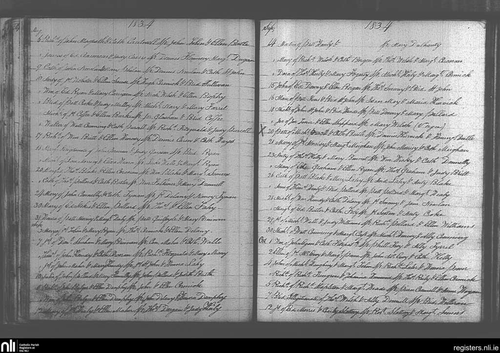 Ballingarry; County of Tipperary; Diocese of Cashel and Emly. Baptisms, Aug. 1834 to Oct. 1834