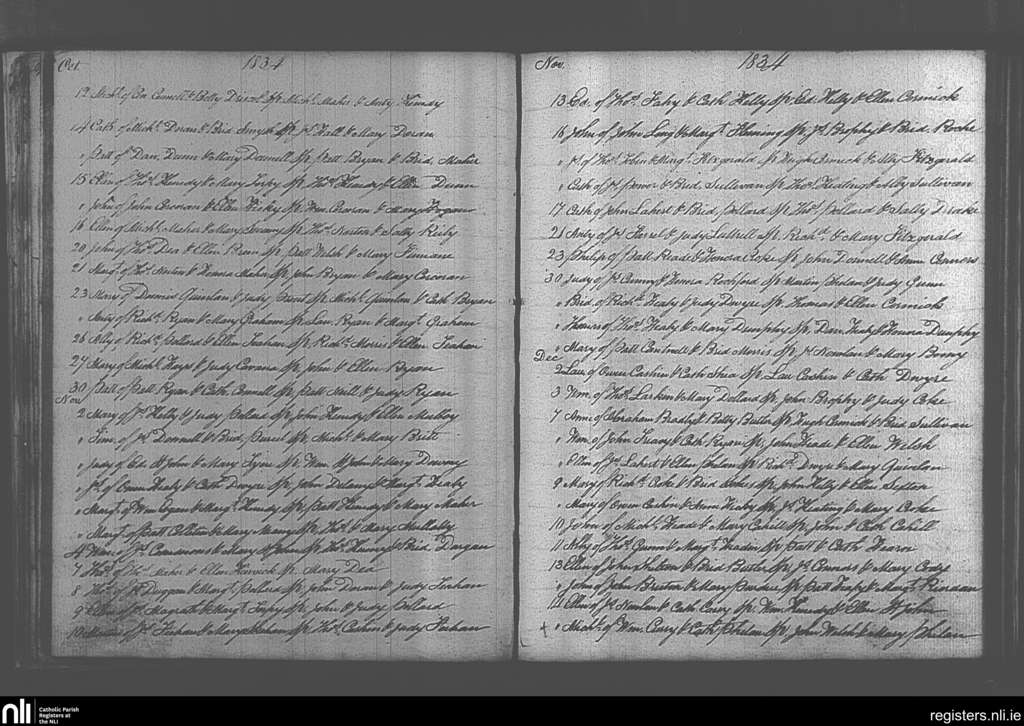 Ballingarry; County of Tipperary; Diocese of Cashel and Emly. Baptisms, Oct. 1834 to Dec. 1834