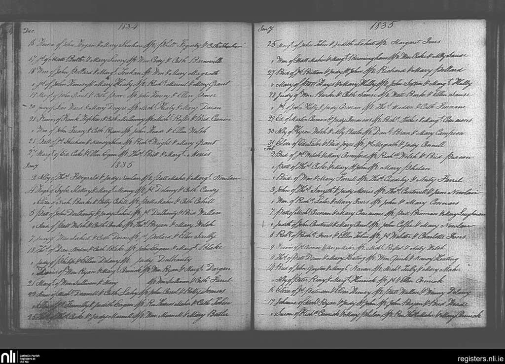 Ballingarry; County of Tipperary; Diocese of Cashel and Emly. Baptisms, Dec. 1834 to Feb. 1835
