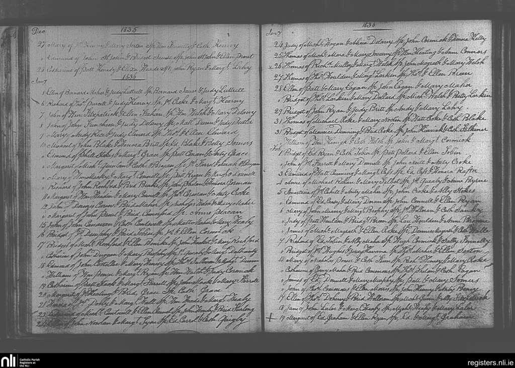 Ballingarry; County of Tipperary; Diocese of Cashel and Emly. Baptisms, Dec. 1835 to Feb. 1836