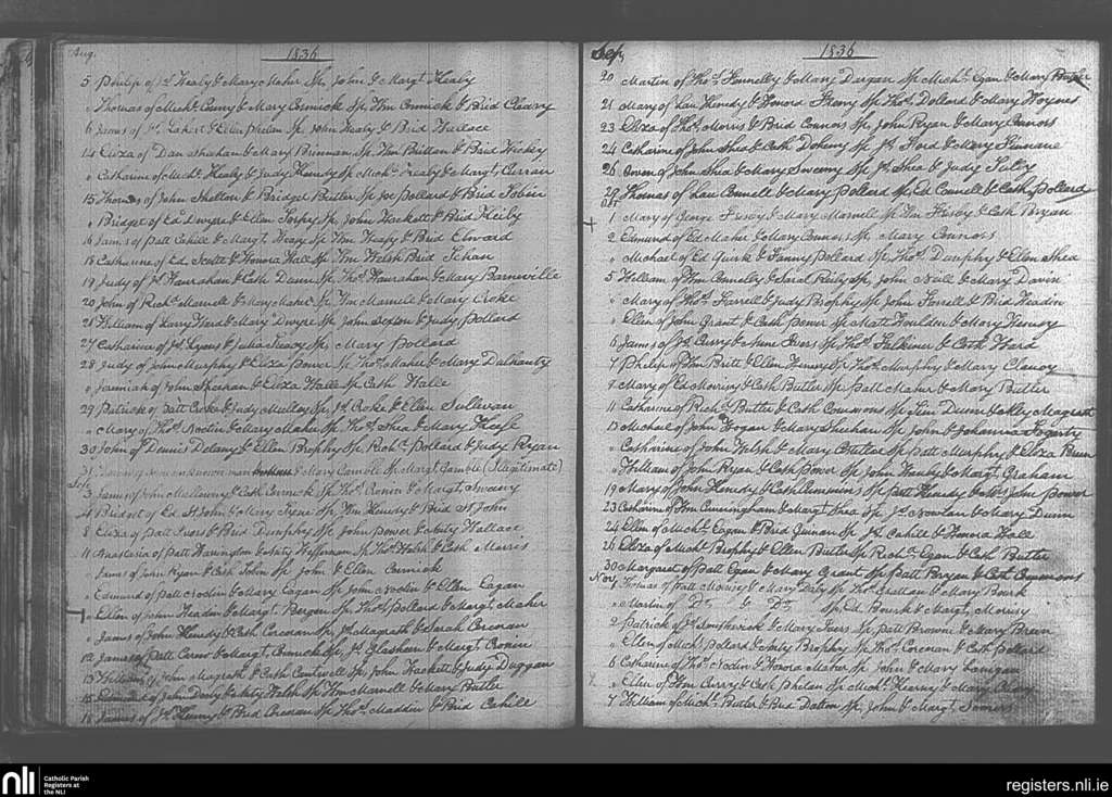 Ballingarry; County of Tipperary; Diocese of Cashel and Emly. Baptisms, Aug. 1836 to Nov. 1836