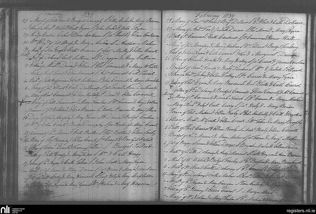 Ballingarry; County of Tipperary; Diocese of Cashel and Emly. Baptisms, Jan. 1839 to Mar. 1839