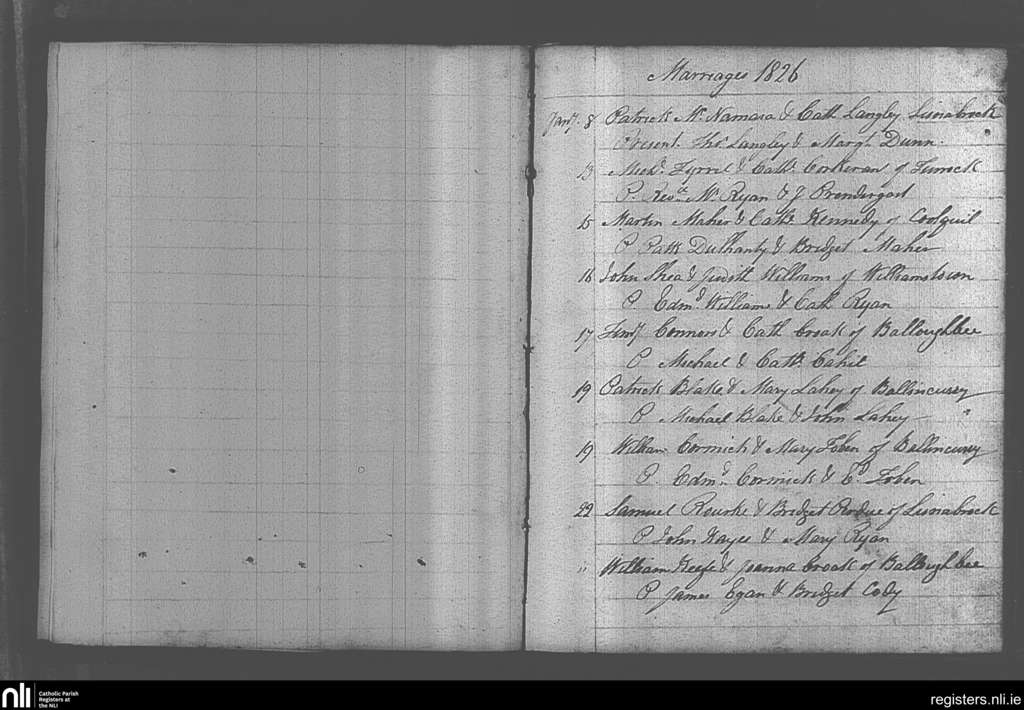 Ballingarry; County of Tipperary; Diocese of Cashel and Emly. Marriages, Jan. 1826