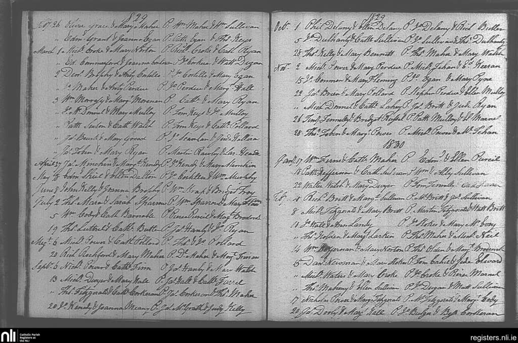 Ballingarry; County of Tipperary; Diocese of Cashel and Emly. Marriages, Feb. 1829 to Feb. 1830