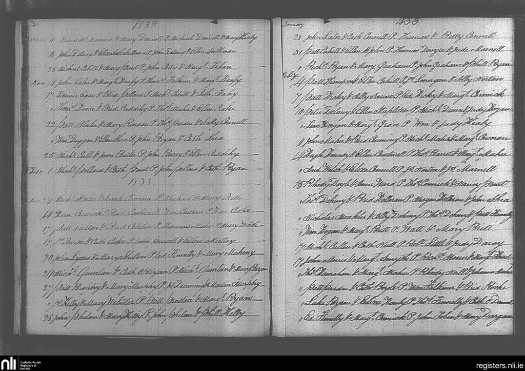 Ballingarry; County of Tipperary; Diocese of Cashel and Emly. Marriages, Oct. 1832 to Feb. 1833